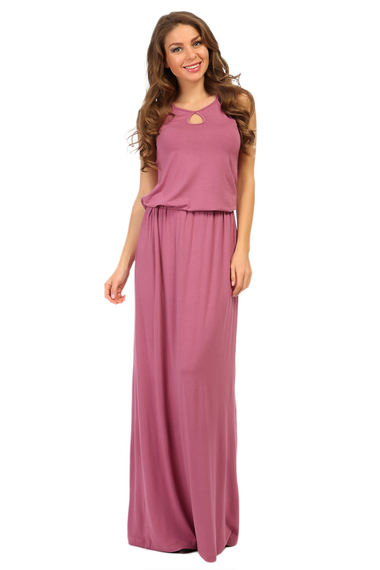 Длинное платье притягательного цвета пепельной розы. Модель в пол, на тонких бретельках, с вырезом "капелька" на груди.