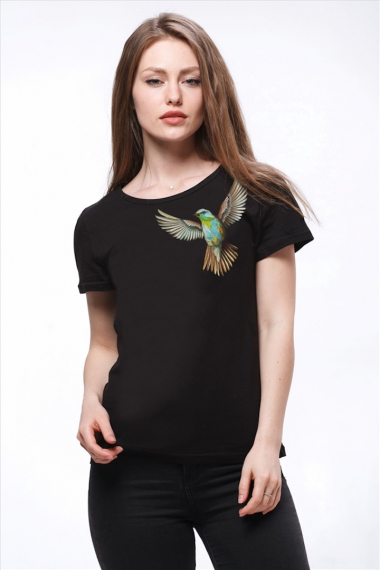 Фото товара 19367, черная футболка с колибри